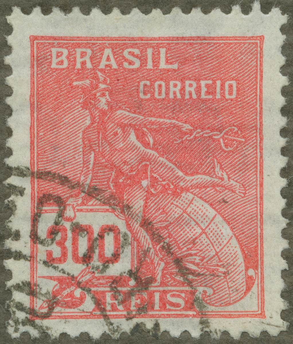 Frimärke från Brasilien, 1920. Motiv av "Mercurius" symbol för handel och kommunikationer