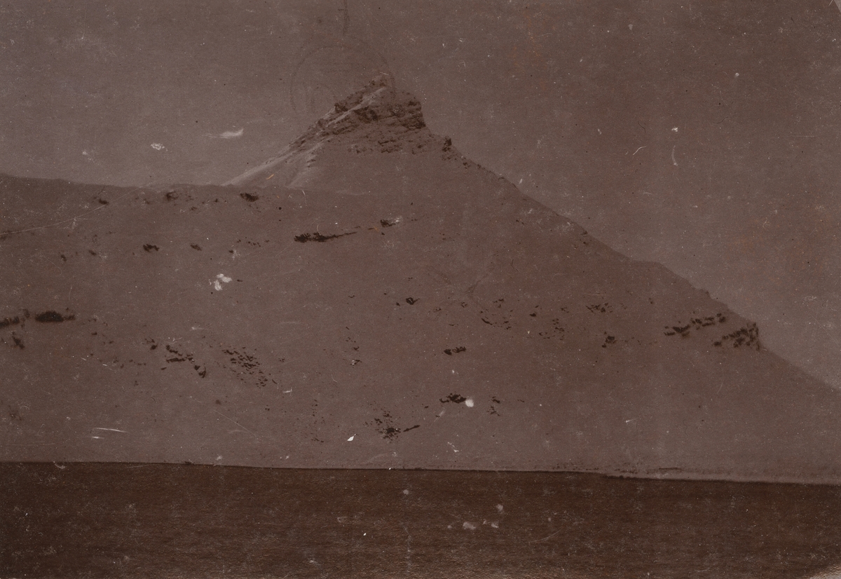 Fotografi från första svenska Antarktisexpeditionen 1901-1904. Vy över hav och snötäckt berg.