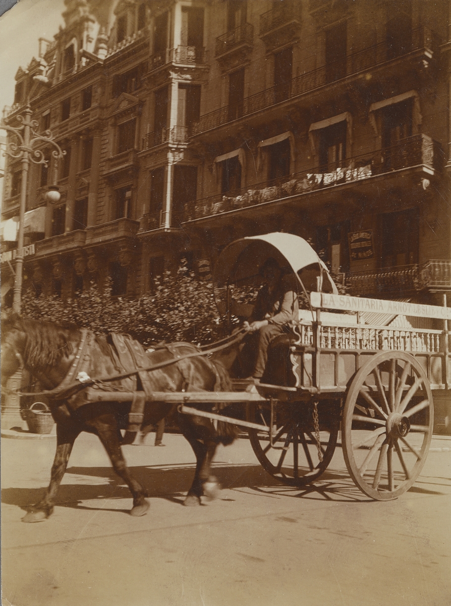 Fotografi från första svenska Antarktisexpeditionen 1901-1904. Motiv av man som kör häst och vagn.