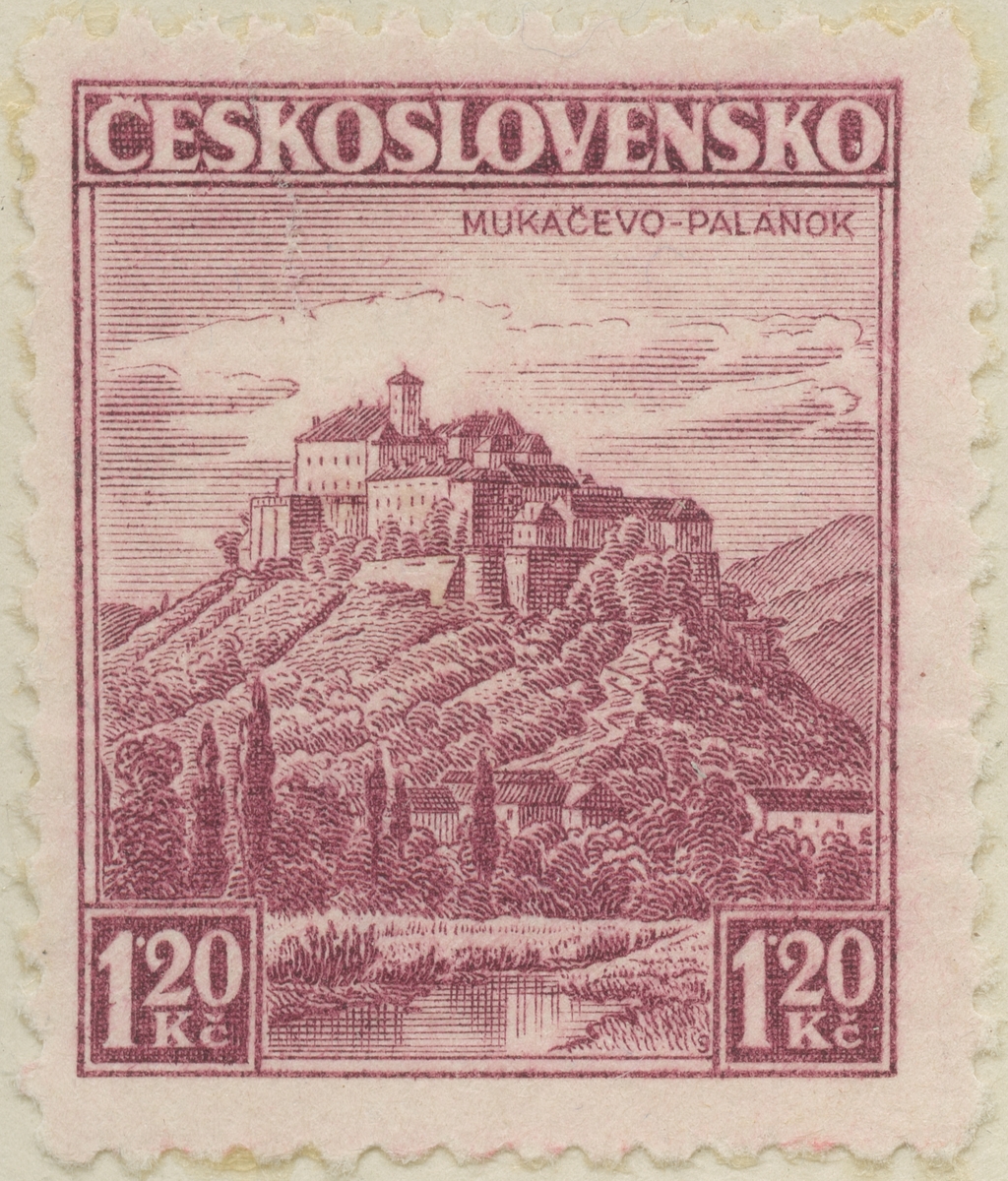 Frimärke från Tjeckoslovakien, 1936. Motiv av Slottet Palanok nära Mukacevo