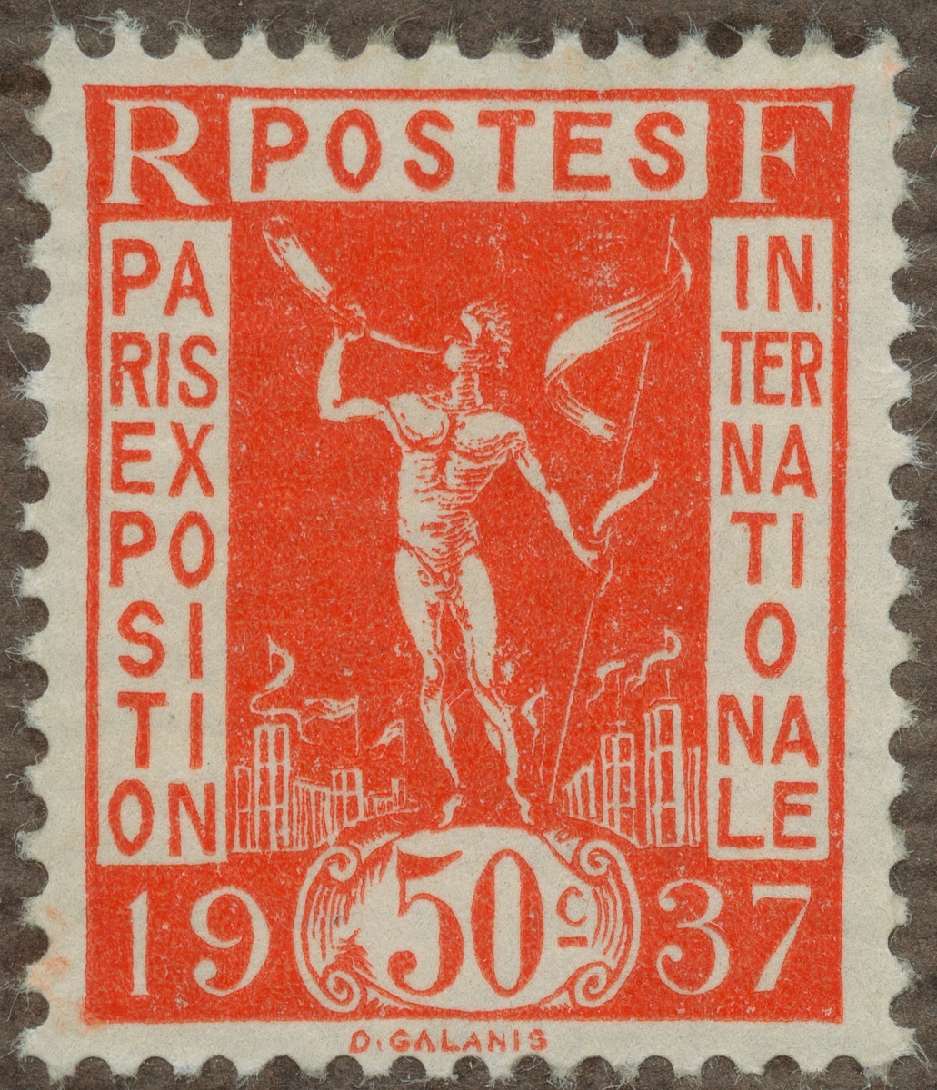 Frimärke från Frankrike, 1936. Motiv av Propaganda för internationell utställning i Paris 1937.