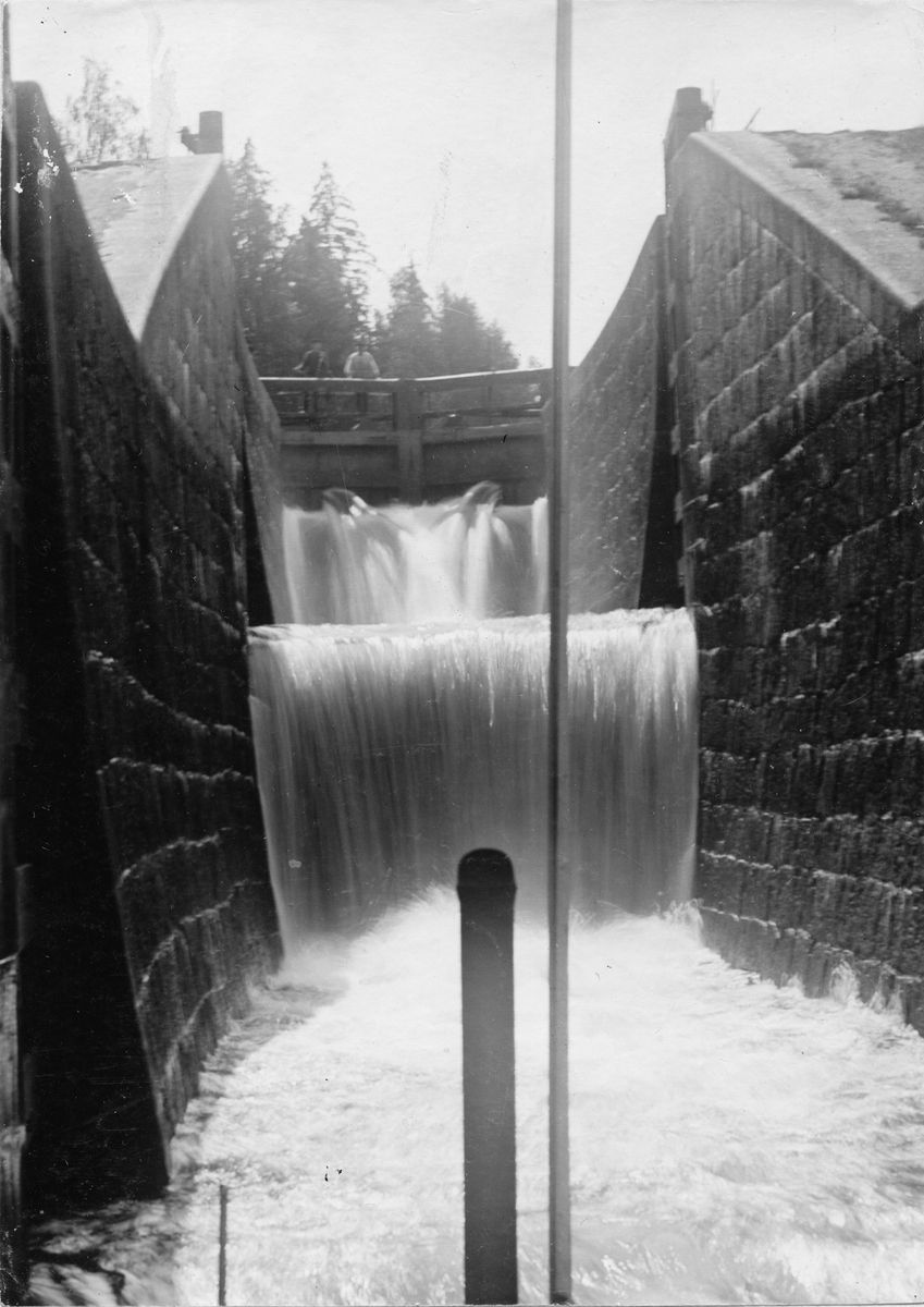 Kinda kanal. Hovetorps slussar, 1901. Bild från tidskriften Hemmets bildmaterial.