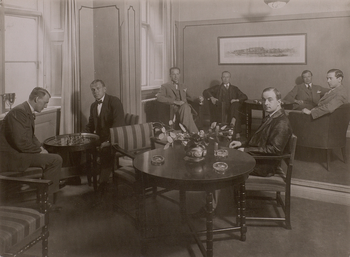 Telegrafpersonal i Stockholm. Telegrafassistenternas rökrum.