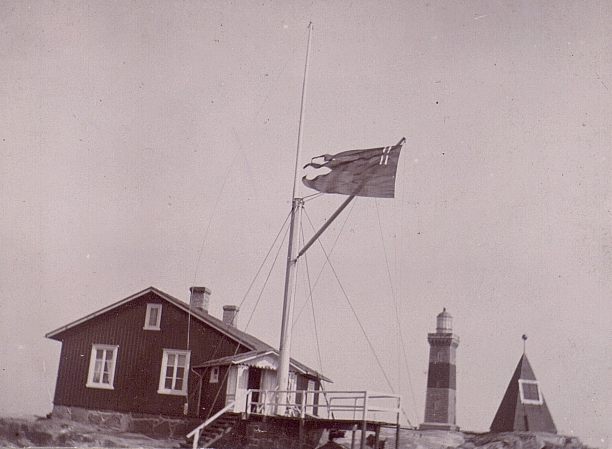 Signalmast och lotsbostad i Vinga omkring 1897.