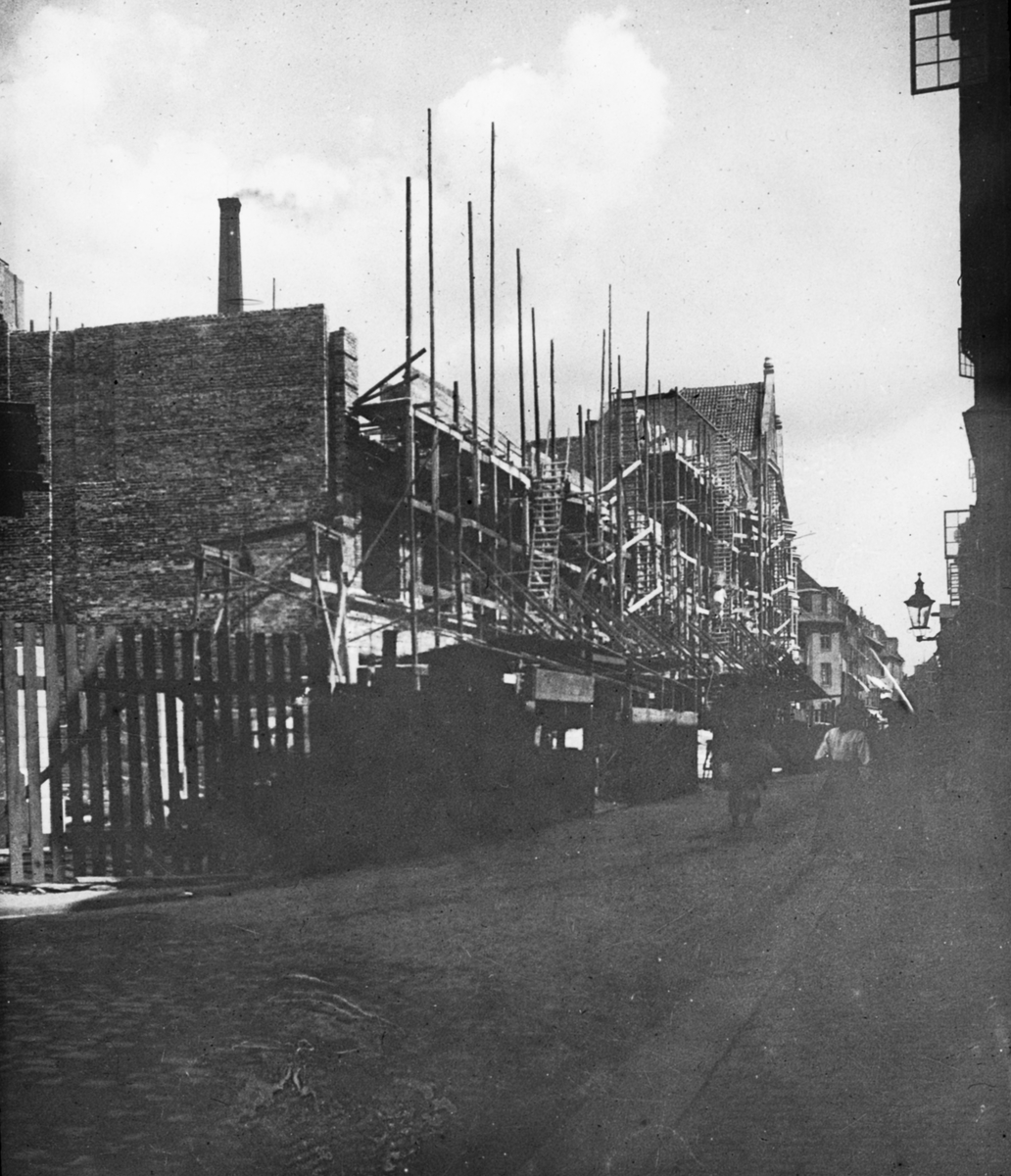 Skioptikonbild med motiv av husbygge/ husrenovering i Köpenhamn.