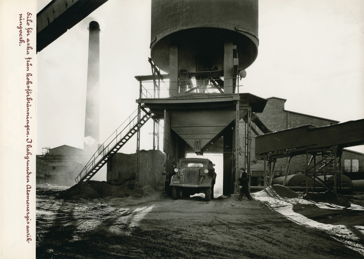 Silo för aska från koksförbränning. AB Atomenergis anrikningsverk.