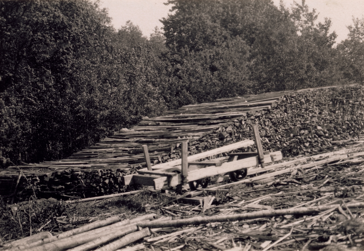 Liggmila (ribbved) nära Ålshults gård, Ålshults Bruk, Småland. Kolet avsett för Husaby masugn.