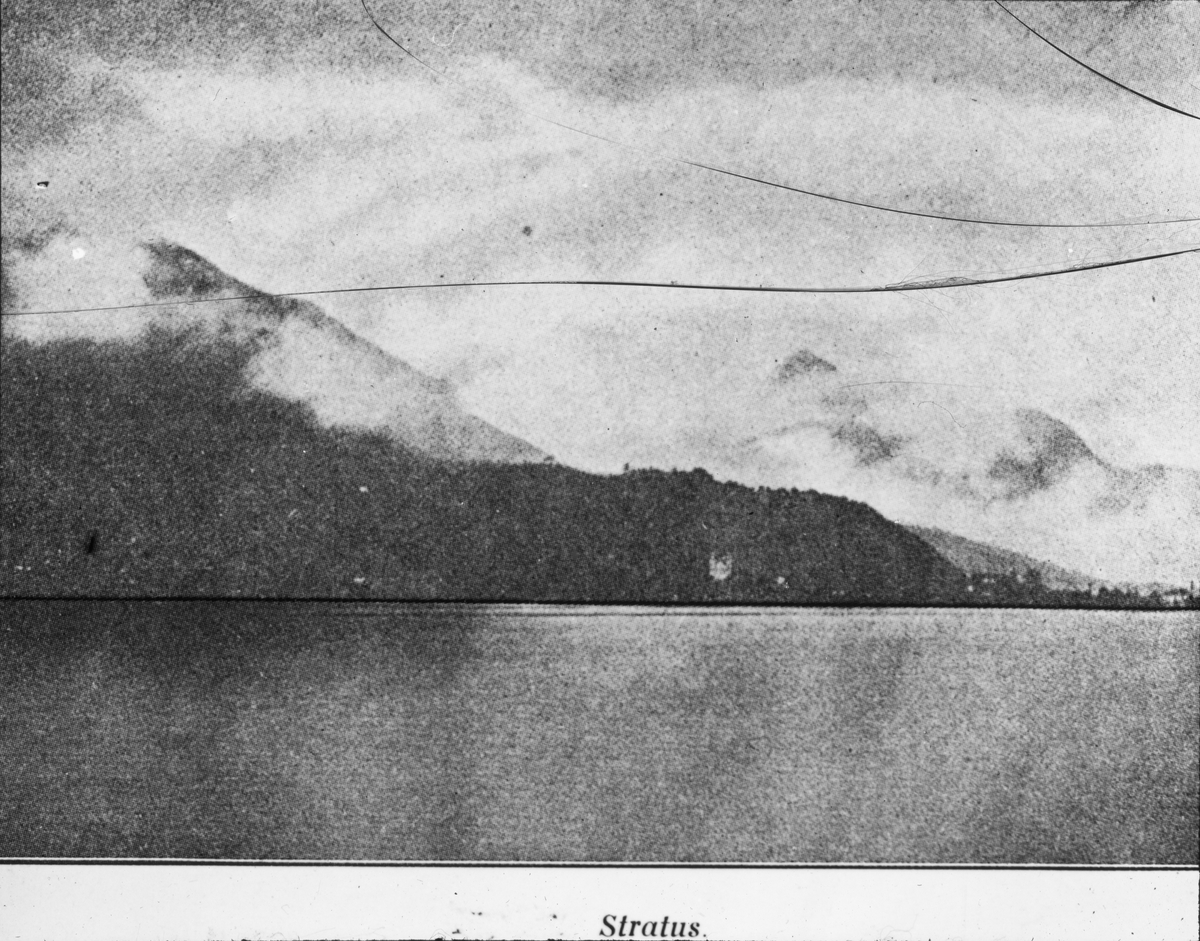 Skioptikonbild med motiv rörande olika typer av moln.Stratus.
