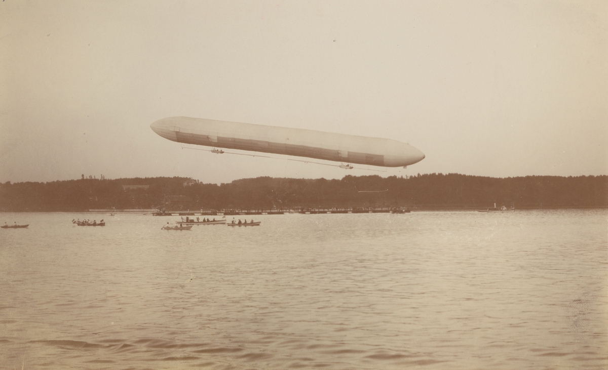 Ur album: Utländska Resan 1900 I. Greve Zeppelins luftskepp vid Friedrichshafen.