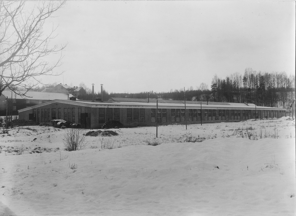 Bångbro Järnverk i Västmanland. Kallvalsverket. Till vänster, modellförrådet, över, brukskontoret. 1924.