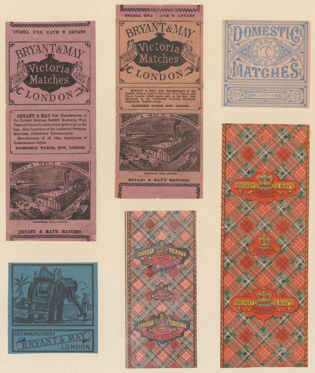 Etiketter för tändsticksaskar, från Svenskt Industri- och Handelsmuseum.