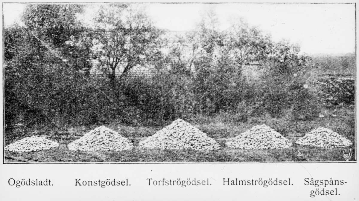 Skioptikonbild med motiv av prov på olika sorters gödsel.