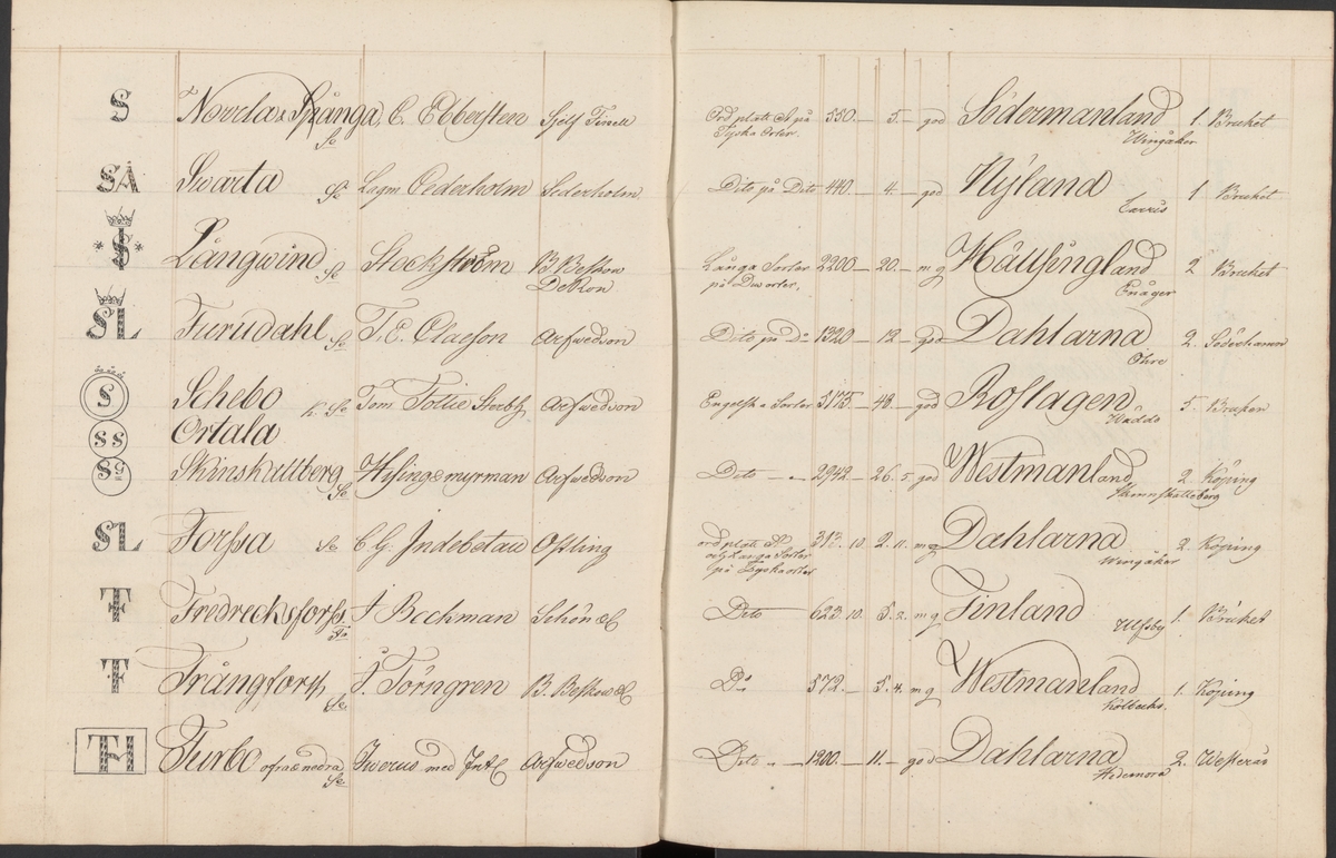 Titel: Stämpelbok vid Stockholms stora metall- och järnvåg inrättad år 1813. Handskrift. Ur Carl Sahlins bergshistoriska samling.