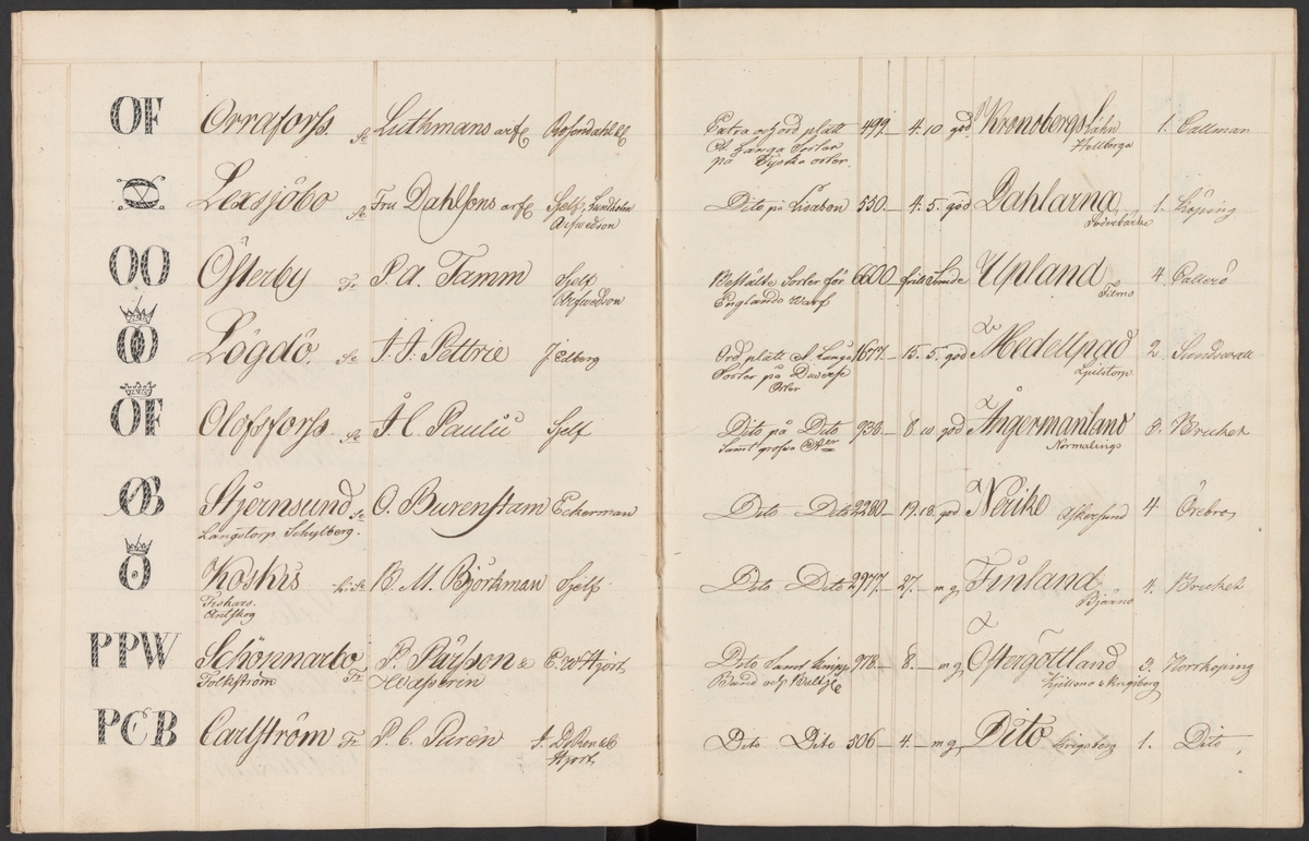 Stämpelbok vid Stockholms stora metall- och järnvåg inrättad år 1813.