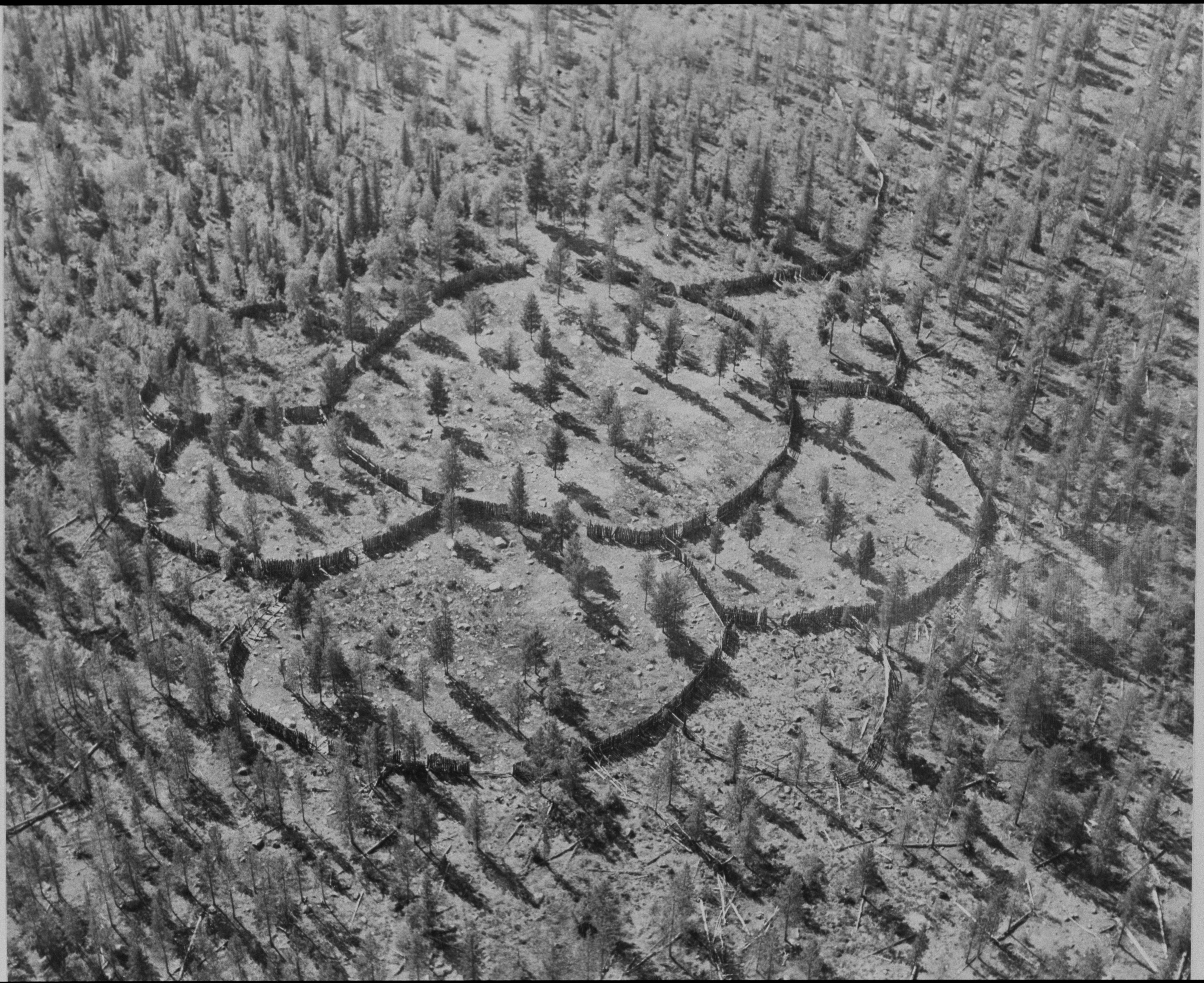 Karats. Skuottoluokte. Innanför skogskojan på bild 49 finns ett ren skiljningsgärde.