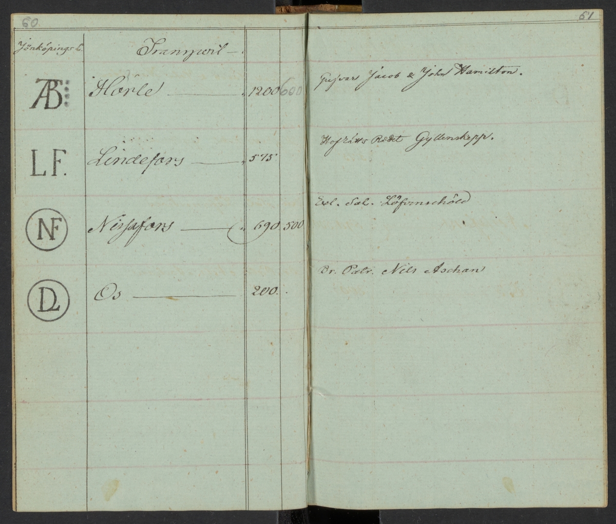 Svenska Stångjärns- och manufakturverkens smidesrätt, stämplar och ägare år 1832.