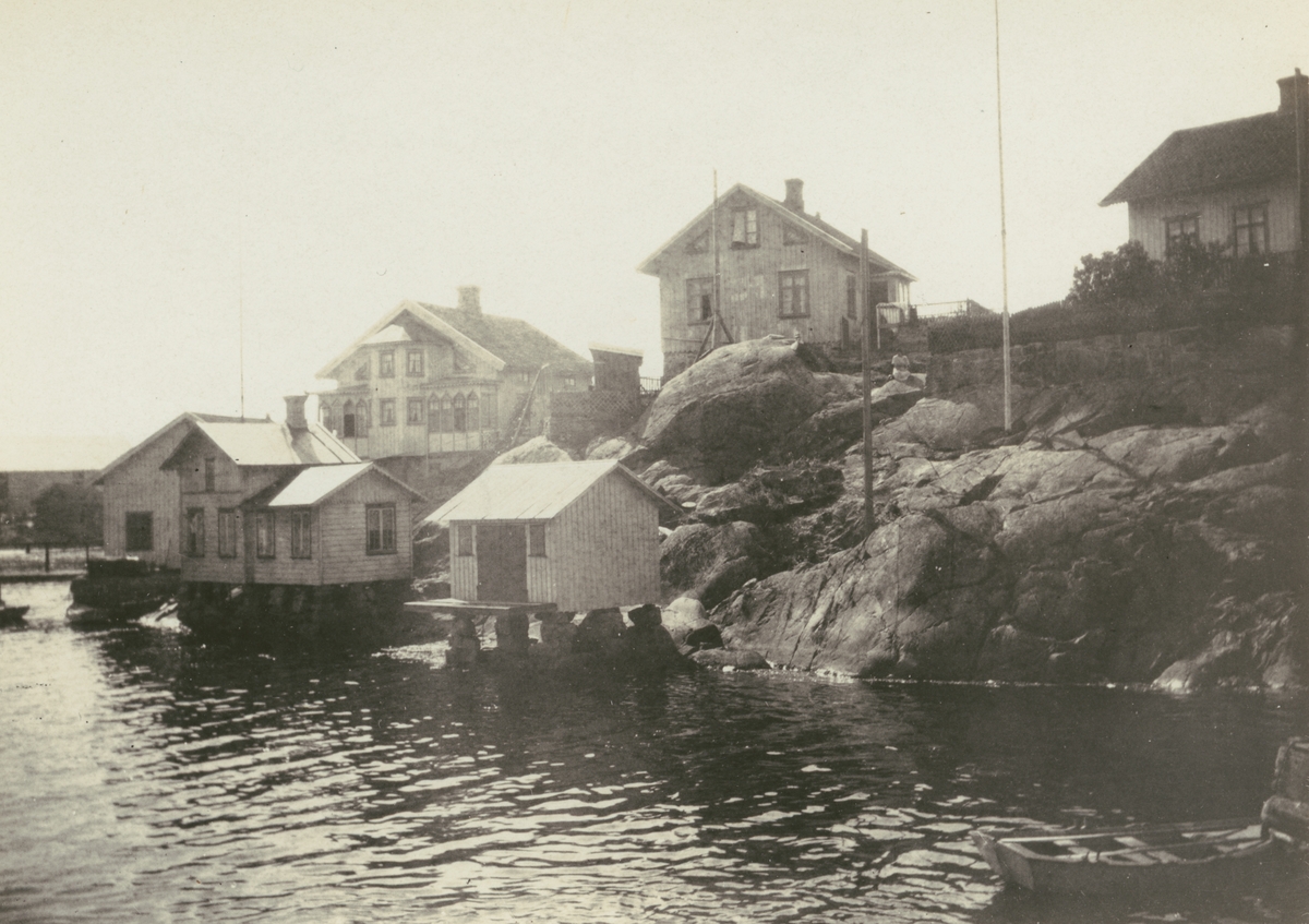 Diverse bilder från Fred Goldbergs samling. Motiv av hus vid vattnet i den bohuslänska skärgården.