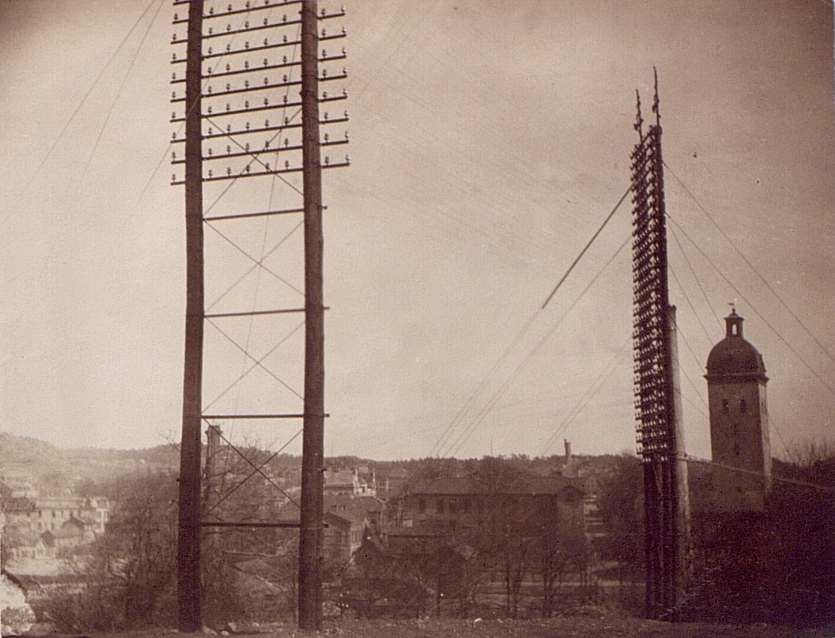 Borås telefonnät omkr. 1900. Parstolpe och telefongalge.