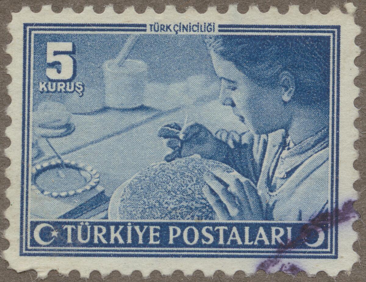 Frimärke från Turkiet, 1942. Motiv av Konsthantverk, gravering.