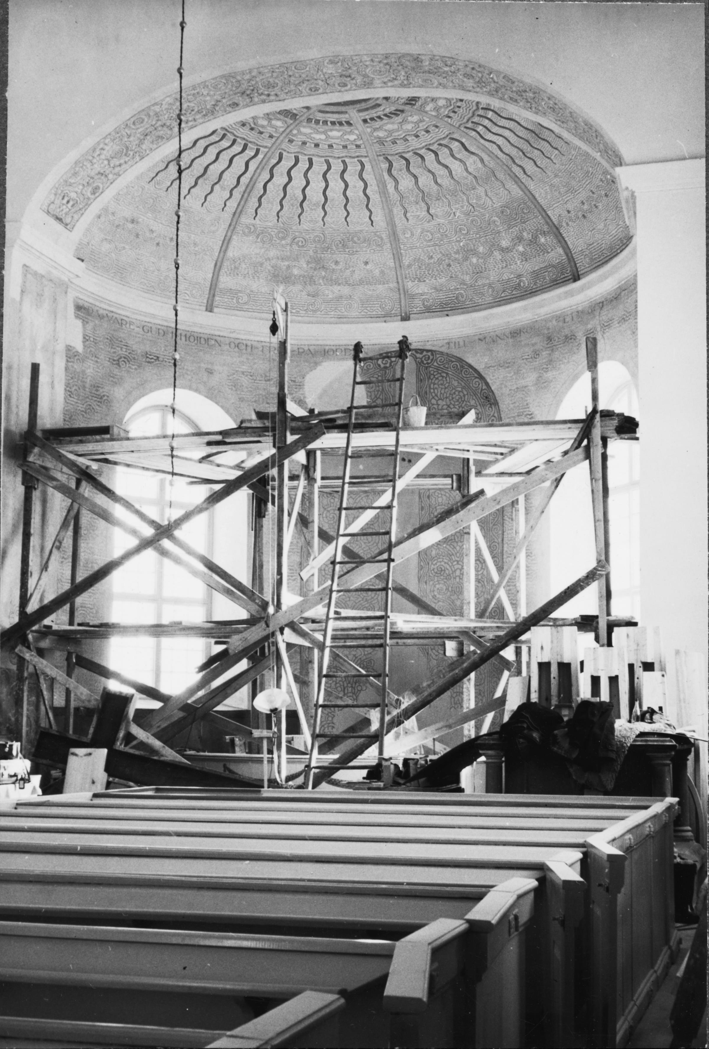 Dekorativ utsmyckning i koret, delvis rengjord.