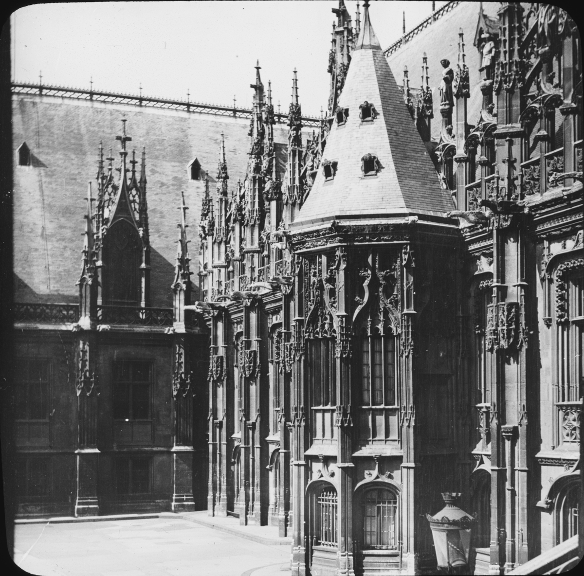 Bilden har förvarats i kartong märkt: Resan 1906. Rouen 5. VII.. Text på bild: "Palais de Justice 1493".