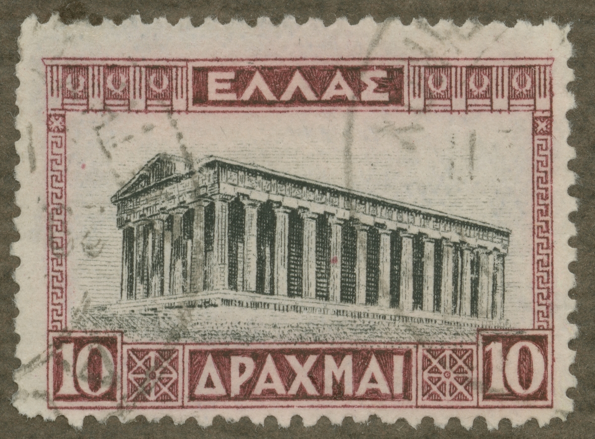 Frimärke från Grekland, 1927. Motiv av Theseus-templet i Athen.