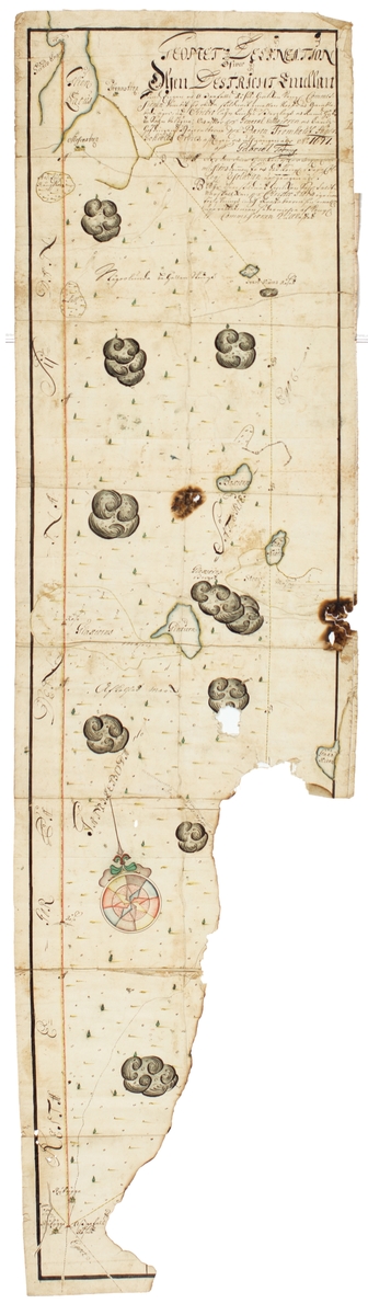 Gammelbo bruk. Karta över omtvistade marker och gränser. Original av Gabriel Thoring 1697.