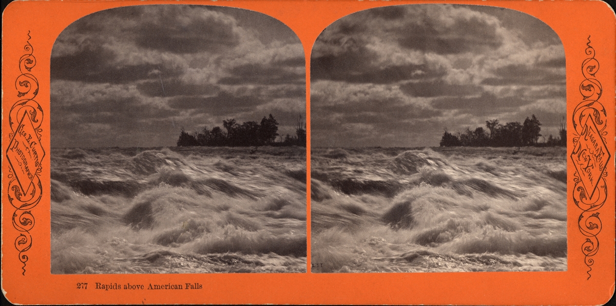 Stereobild av vattenströmmar över American Fall, Niagara Falls.