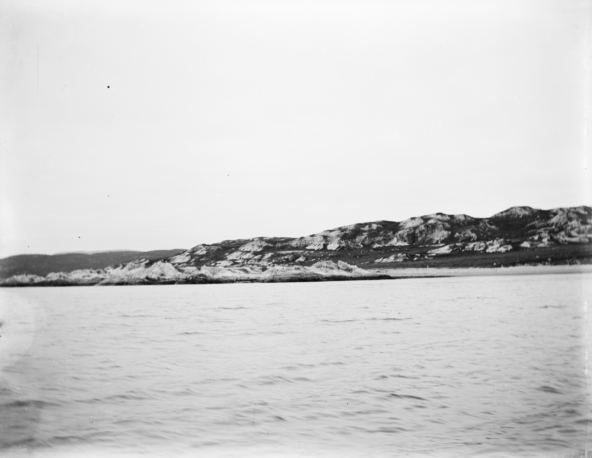 Titel: Fotografi från Spetsbergen. Vy över hav och berg.