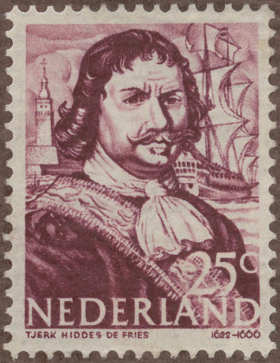 Frimärke från Nederländerna, 1943. Motiv av Tjerk Hiddes de Fries 1622-1666 Holländsk amiral