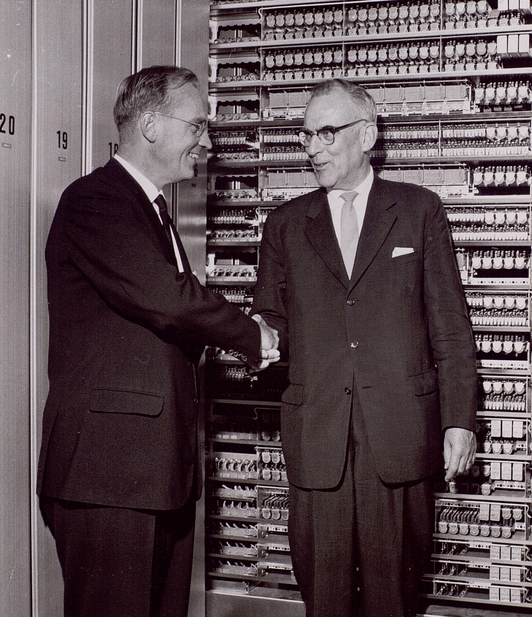 Dreviksstrands kodväljarstation. Invigningen 1/10 1965. Vd LME B. Lundvall och generaldirektör Sterky.