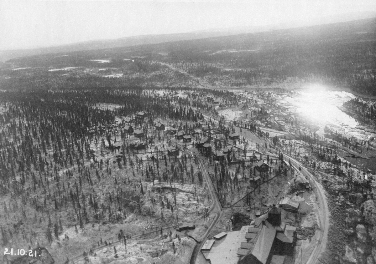 Porjus kraftverk och permanenta bostäder från flygmaskin.