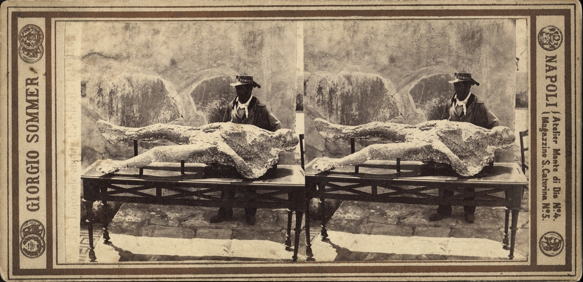 Stereobild av avgjutning av vulkanoffer från Pompei.