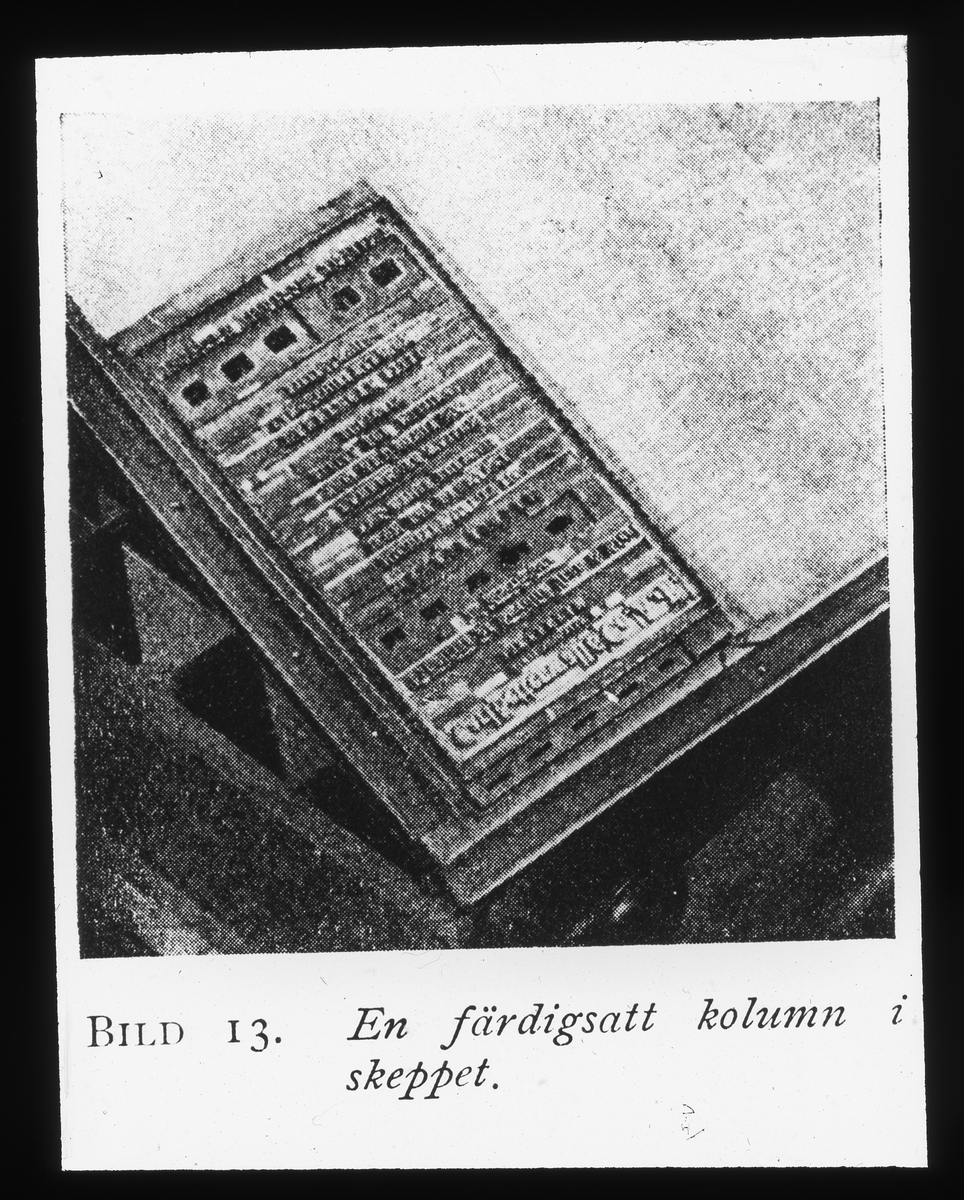 Skioptikonbild från Institutionen för fotografi vid Kungliga Tekniska Högskolan. Använd av professor Helmer Bäckström som föreläsningsmaterial. Bäckström var Sveriges första professor i fotografi vid Kungliga Tekniska Högskolan i Stockholm 1948-1958.
