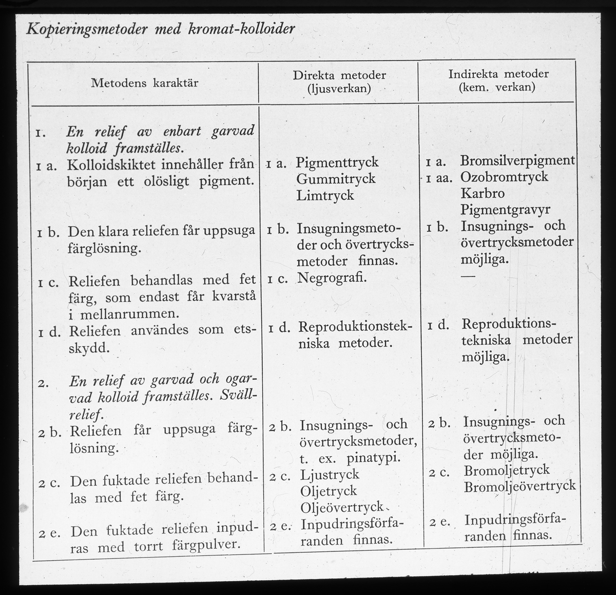 Skioptikonbild från Institutionen för fotografi vid Kungliga Tekniska Högskolan. Använd av professor Helmer Bäckström som föreläsningsmaterial. Bäckström var Sveriges första professor i fotografi vid Kungliga Tekniska Högskolan i Stockholm 1948-1958.