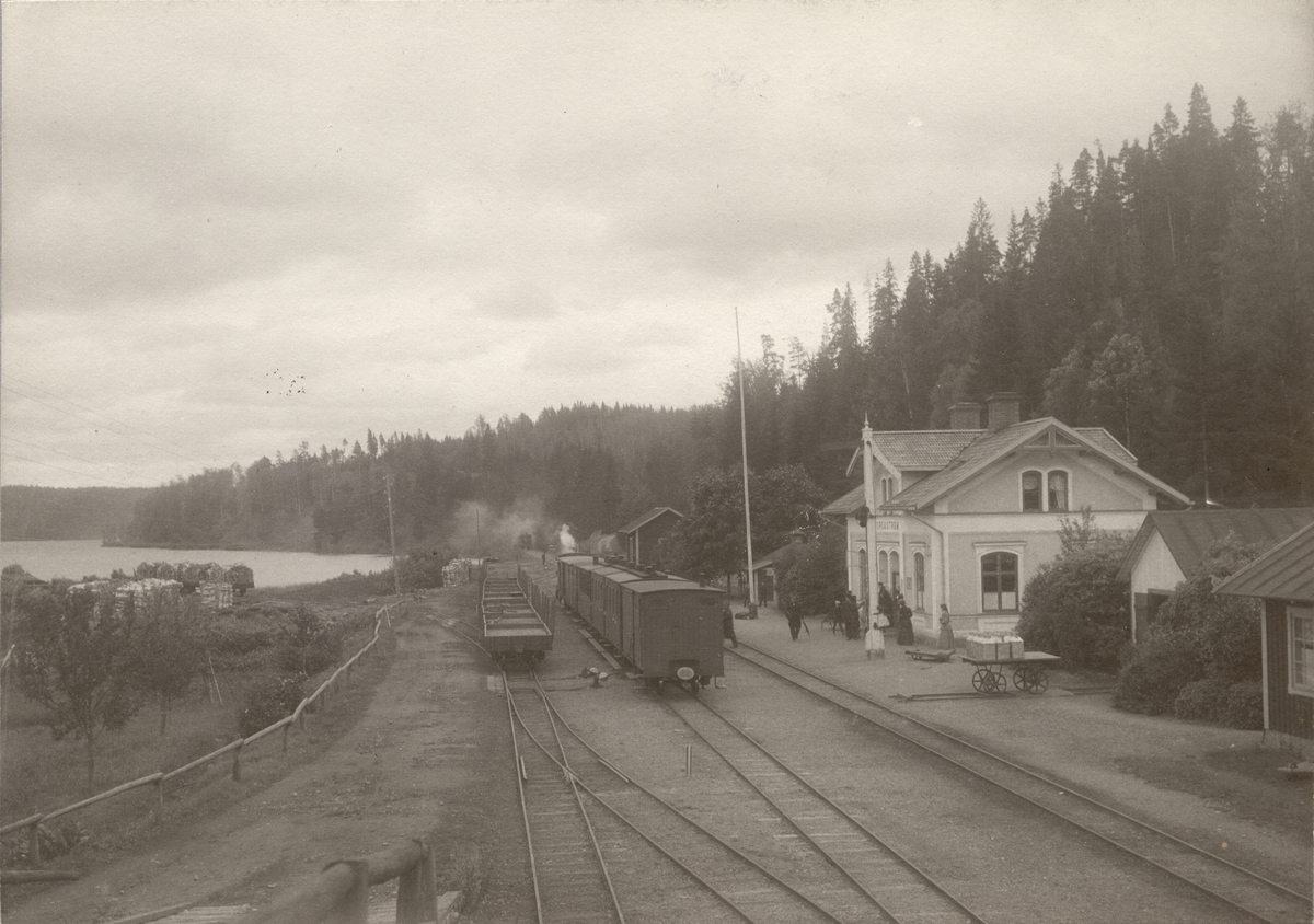 Forsaströms järnvägsstation i Gärdserums församling, Norra Tjust. Fotografiet vann pris i Svenska Turistföreningens pristävlan 1902.