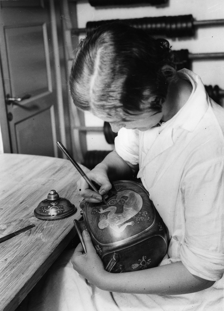 Gustavsbergs Porslinsfabrik. Wilhelm Kåges avdelning för ciselering.