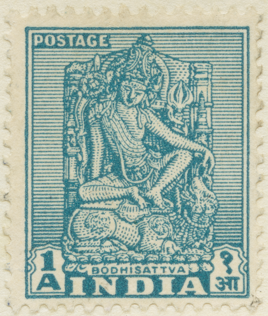 Frimärke från Indien, 1949. Motiv av Bodhisattva: Buddha Bild