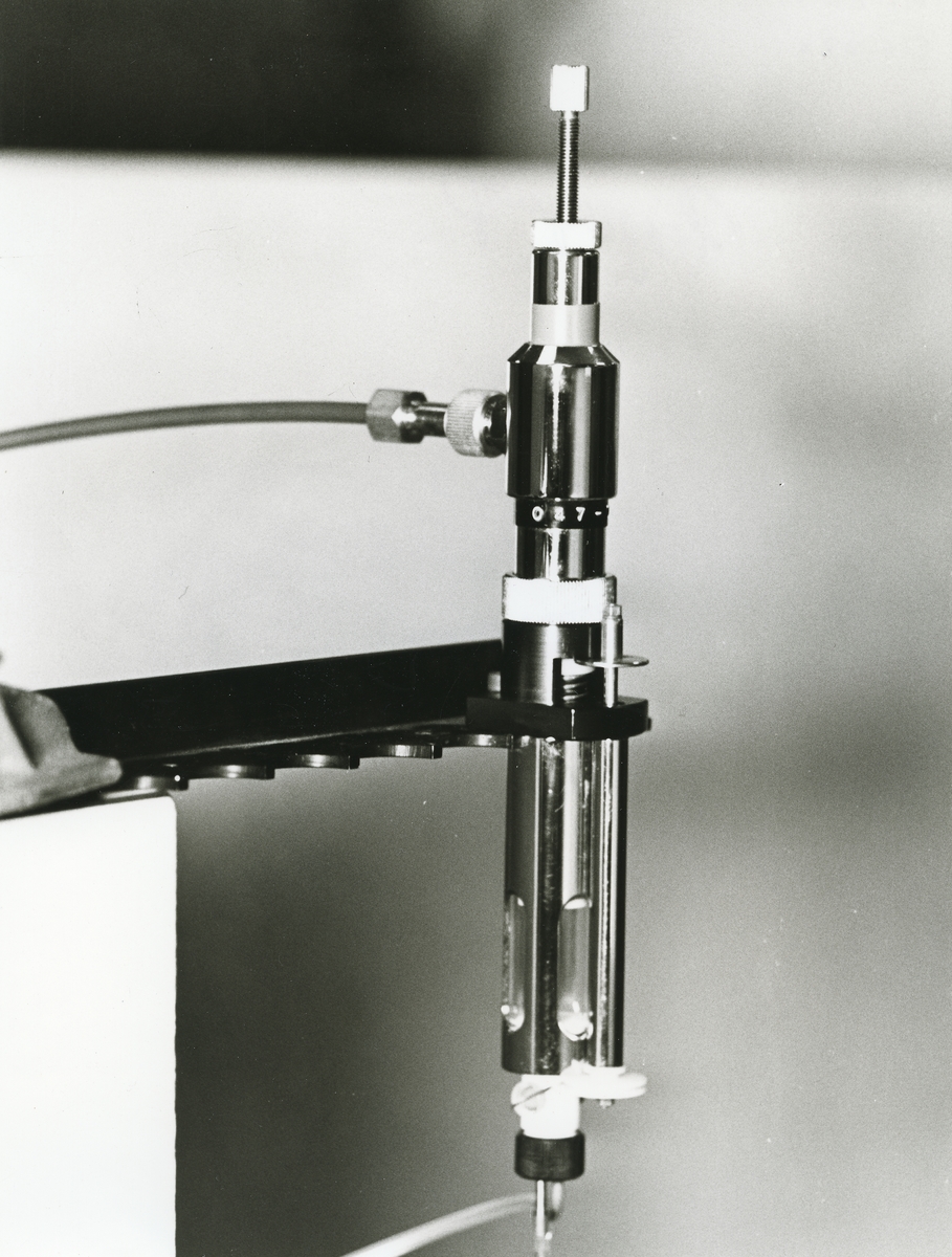 "Fig. 27a (vänster). Autochemistens tryckluftdrivna provpipett."