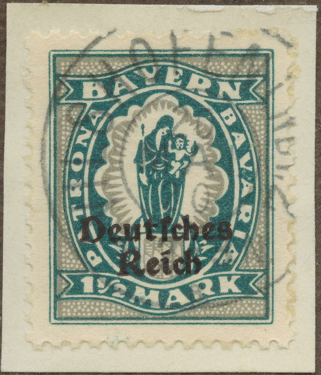 Frimärke från Bayern, 1920. Motiv av Maria med barnet: -Patrona Bavariae- Bayerns skyddshelgon.