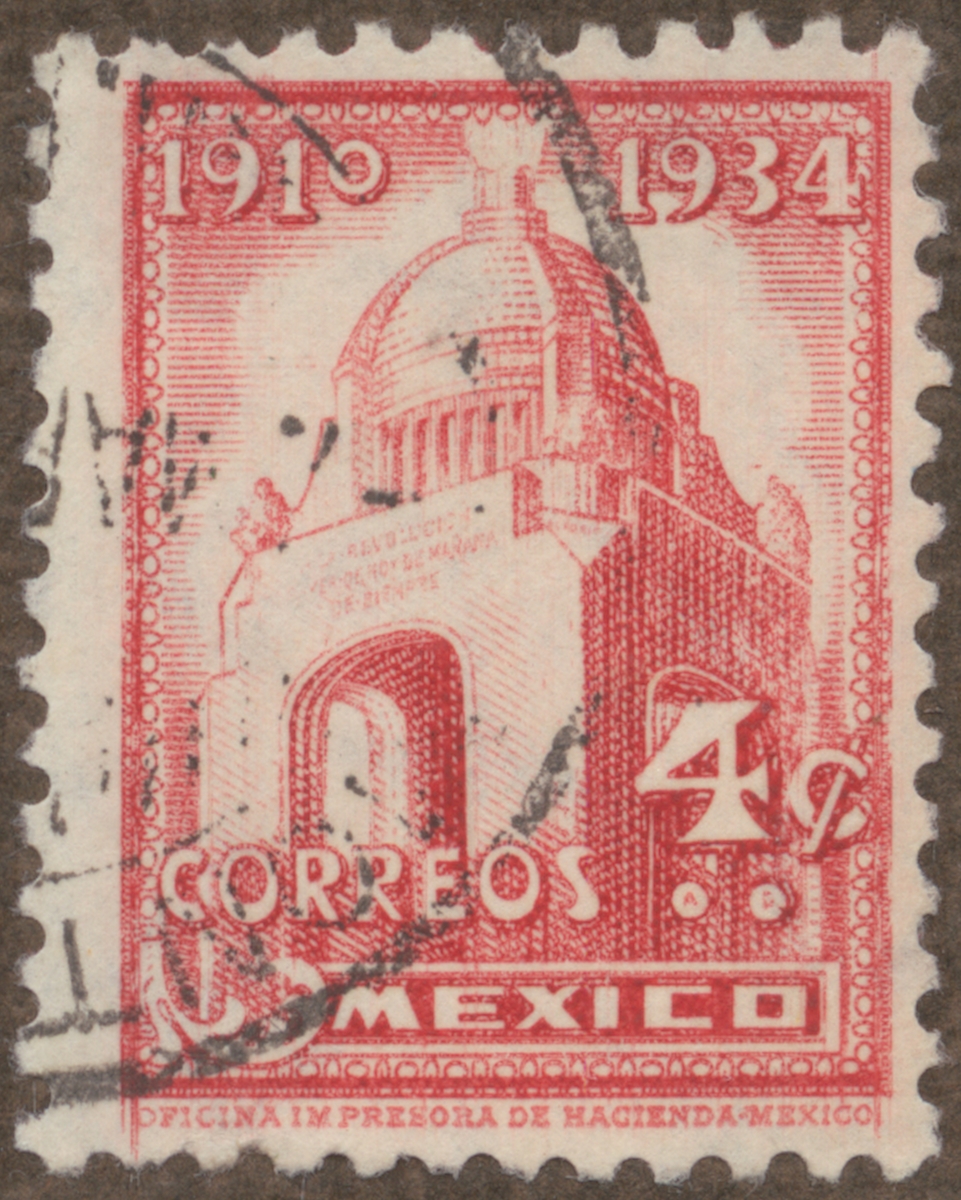 Frimärke från Mexico, 1934. Motiv av Monument över Revolutionen 24-årsminne 1910-1934
