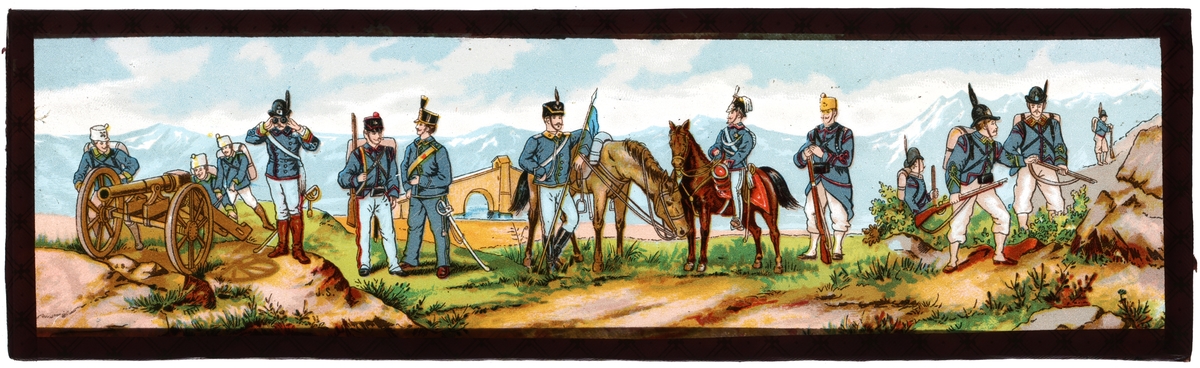 Målad bild på glas för skioptikon/laterna magica.