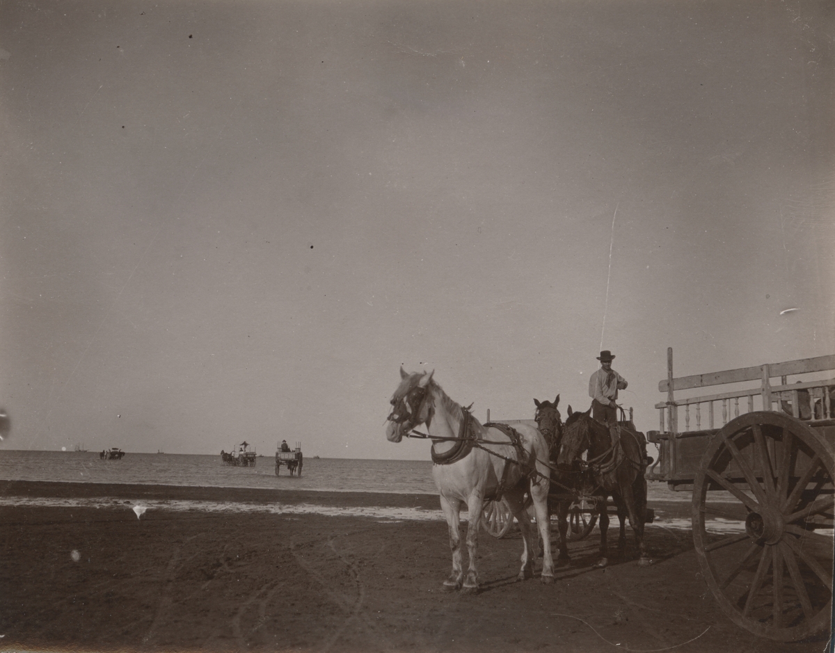 Fotografi från expedition till Peru 1920. Motiv av man med häst och vagn.