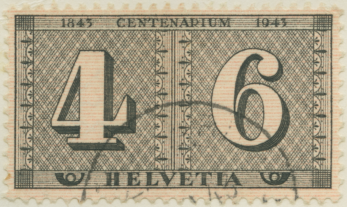 Frimärke från Schweiz, 1943. Motiv av Posthorn Schweiz frimärken 100 år 1843-1943