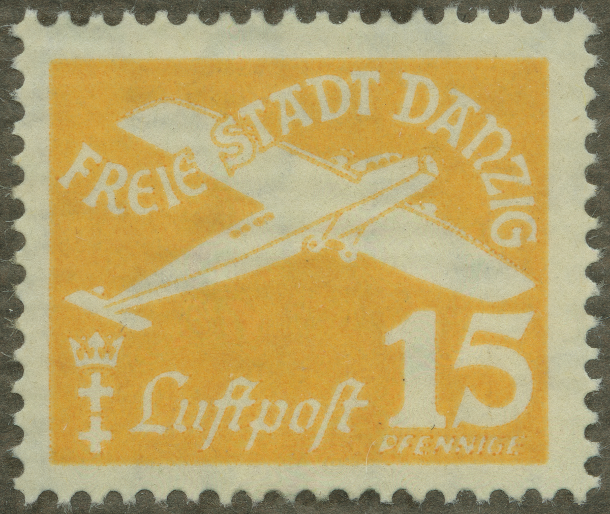 Frimärke från Danzig, 1935. Motiv av Postmonoplan