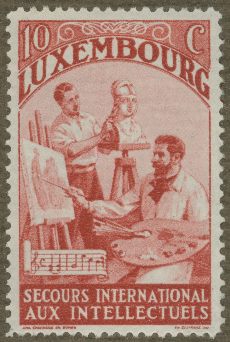 Frimärke från Luxembourg, 1935. Motiv av undervisningsateljé för målning och skulptering.
