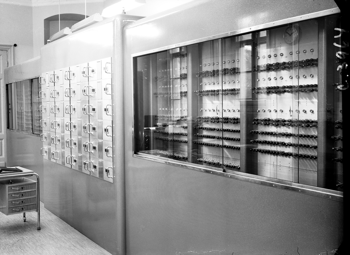 Dokumentation av byggandet av matematikmaskinen BESK på Drottninggatan i Stockholm. Huvudpanelen.