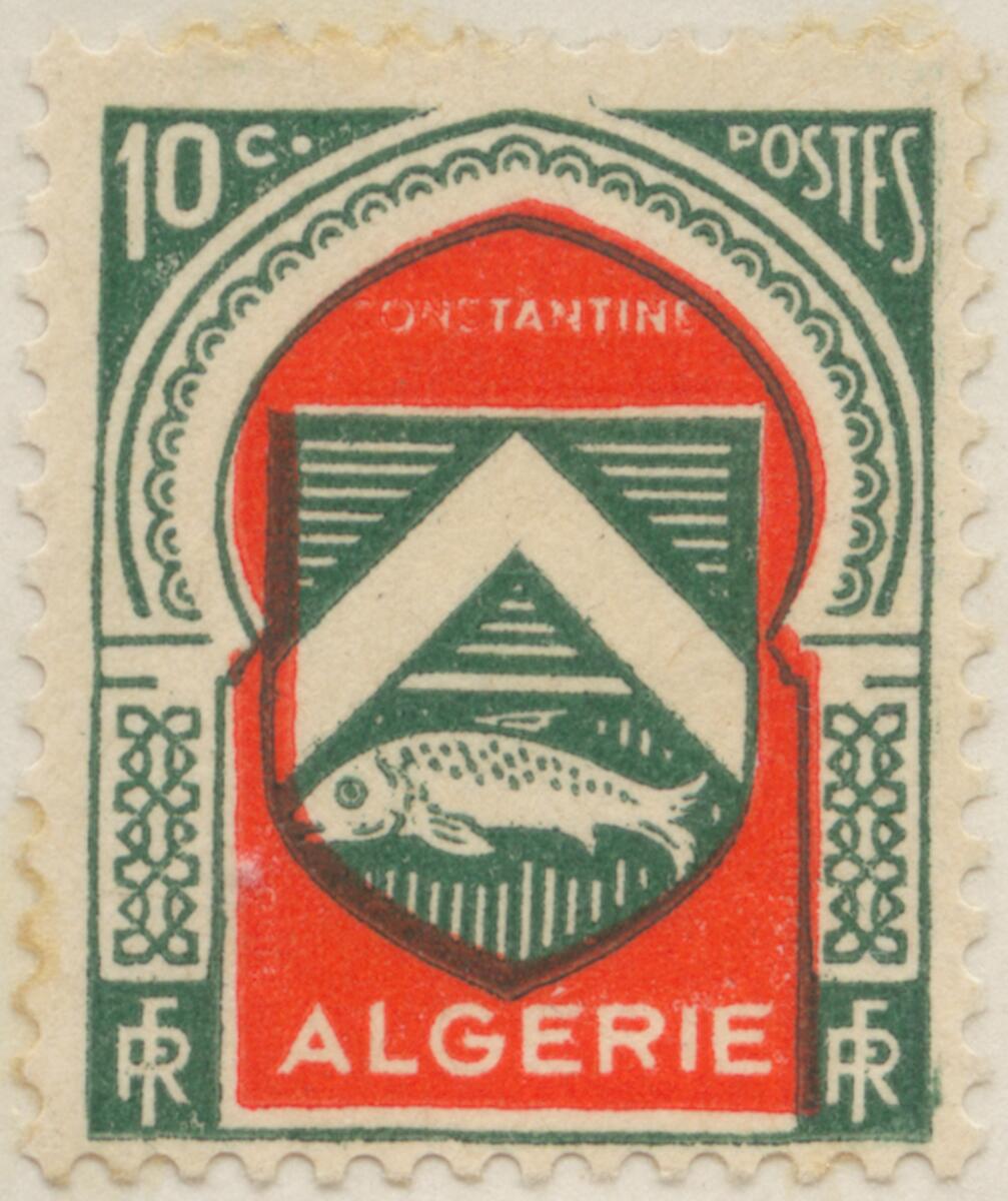 Frimärke från Franska Algeriet, 1947. Motiv av Staden Constantines Vapen "-Serie: algeriska städers vapen-"