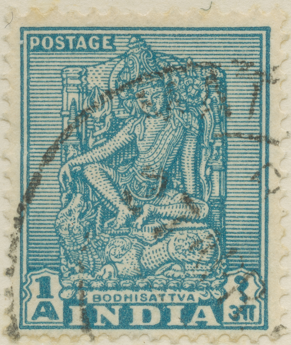 Frimärke från Indien, 1949. Motiv av Guden "Bodhisattva" Buddha -2:a årsdagen av Indiens oavhängighet- 1947-1949.