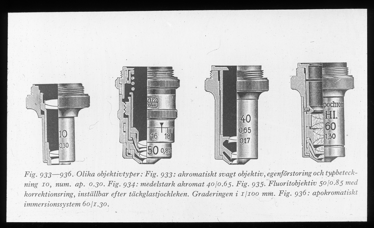 Beskrivning av olika objektivtyper för mikrofotografi.